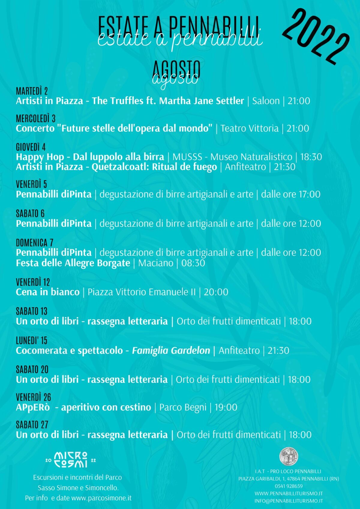 Pennabilli Pennabilli, Pennabilli, Italia🍻 Birre Artigianali 🌮 Street Food 🎵 Musica live 📆 𝟓 - 𝟔 - 𝟕 𝗮𝗴𝗼𝘀𝘁𝗼 𝟮𝟬𝟮𝟮 🕕 dalle ore 17:00 del venerdì e dalle ore 12:00 di sabato e [...]