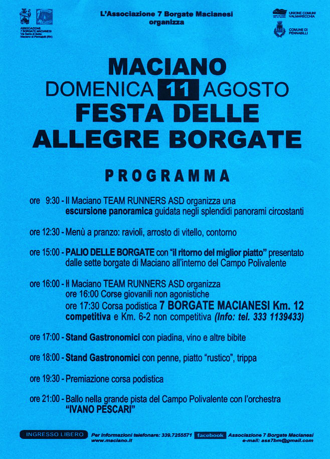 Ore 16.00 SANTA MESSA Celebrata dal Parroco di Pennabilli Don Pier Luigi Bondioni PROCESSIONE della Madonna della Natività RINFRESCO offerto dal comitato organizzatore della festa Ore 18.00 LEZIONE SUL CAMPO [...]