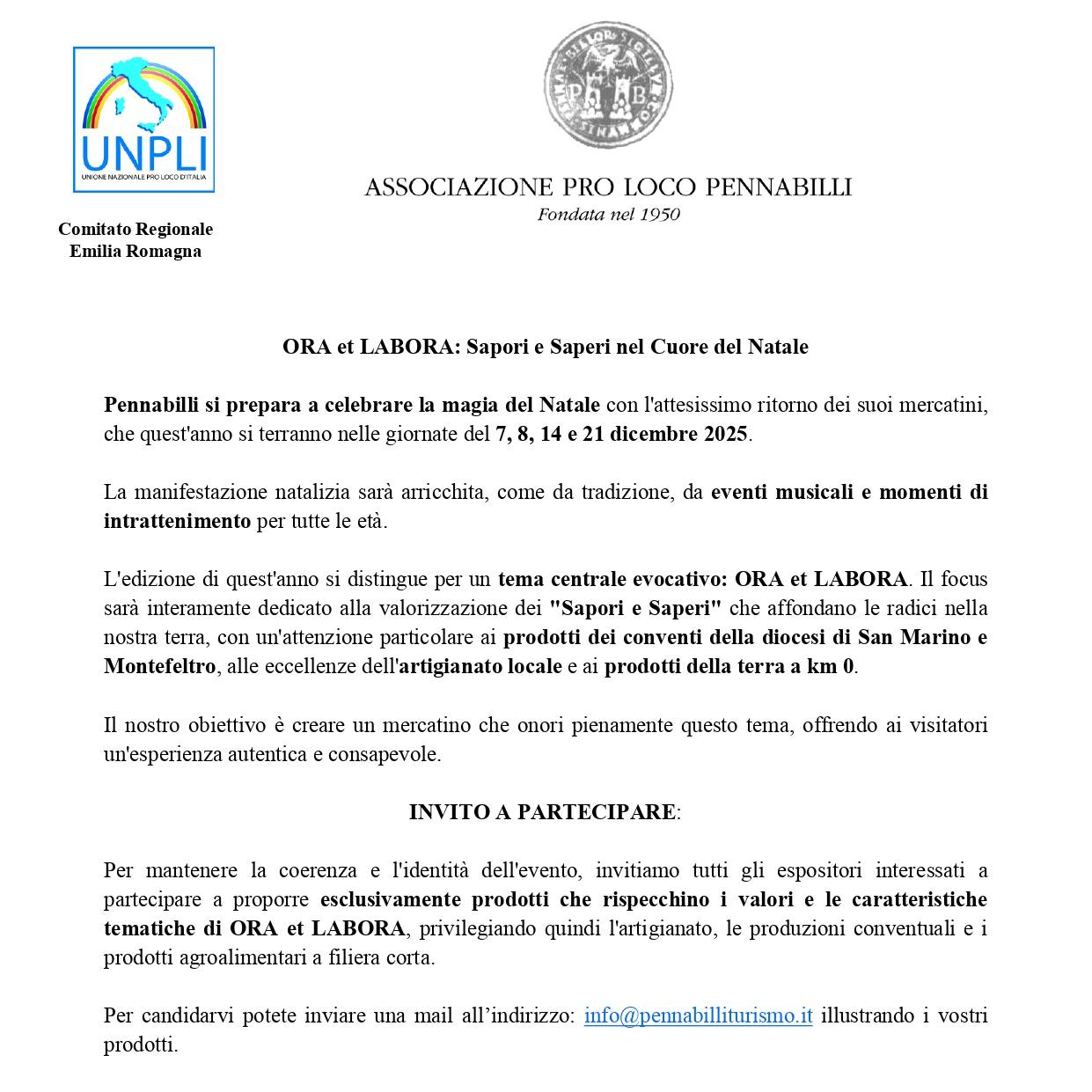 Per mantenere la coerenza e l’identitΓ dell’evento, invitiamo tutti gli espositori interessati a partecipare a proporre esclusivamente prodotti che rispecchino i valori e le caratteristiche tematiche di ORA et LABORA, privilegiando quindi l’artigianato, le produzioni conventuali e i prodotti agroalimentari a filiera corta.